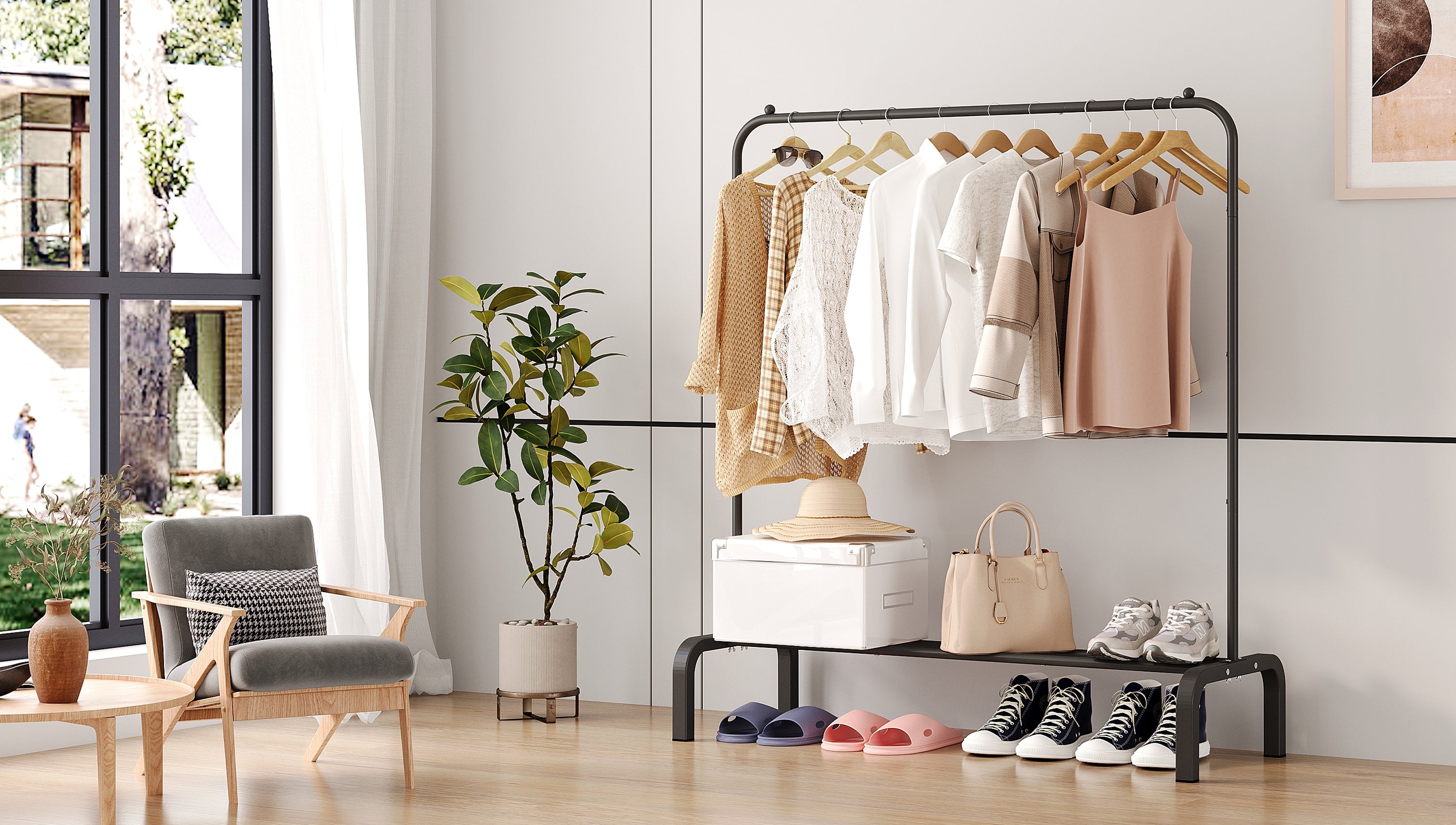 JIUYOTREE 3-Tier Plastic Rolling Storage Cart Utility Cart with Extra Hanging Cups Handles Lockable Wheels for Living Room Bathroom Kitchen Office White